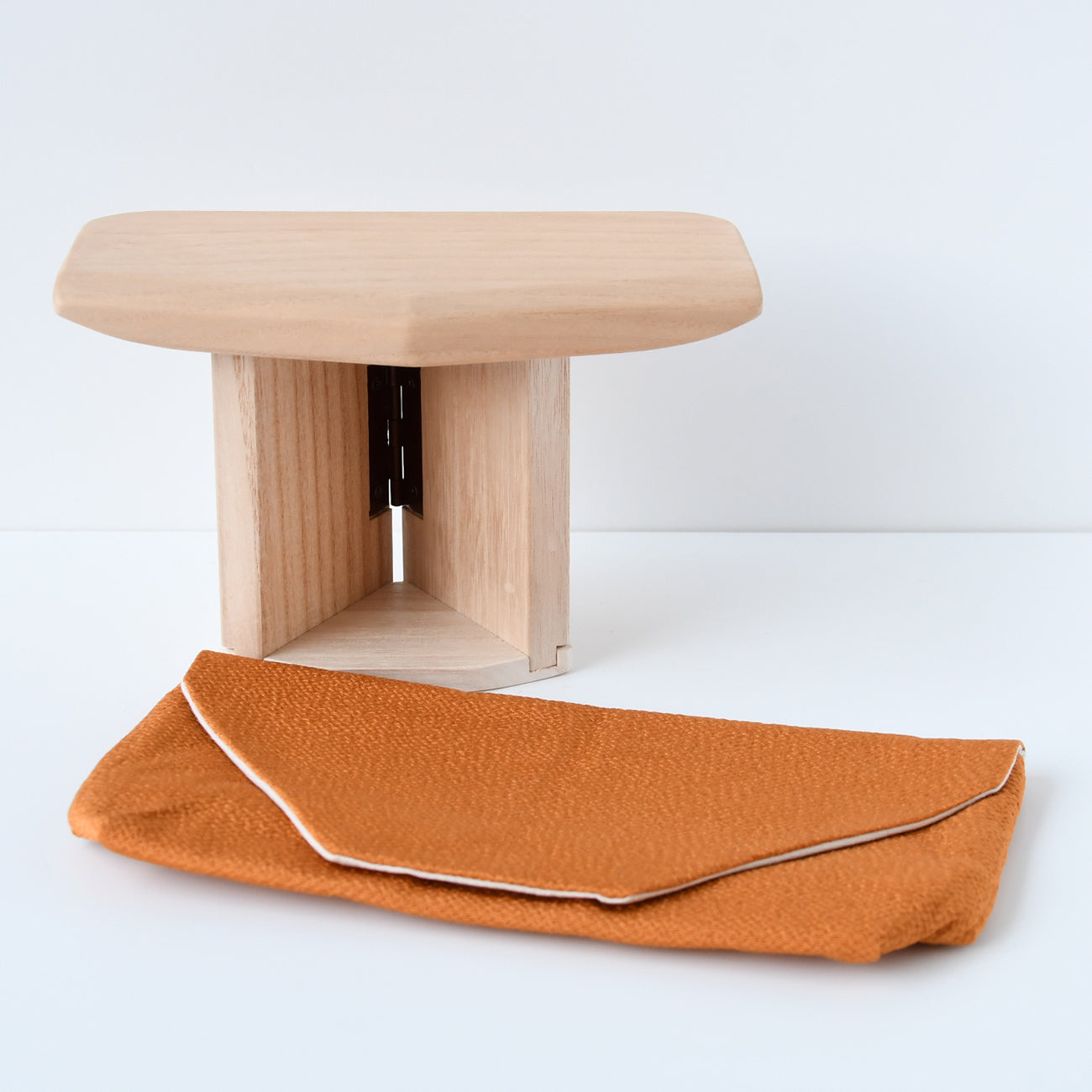 お座敷でのお食事など正座がツラい時に重宝するのが正座椅子。取り外し可能な脚部は蝶番で折りたためコンパクトに収納できます。傾斜を付けた作りになっているので身体にフィットしやすく、脚や膝に負担がかからないので脚がしびれません。