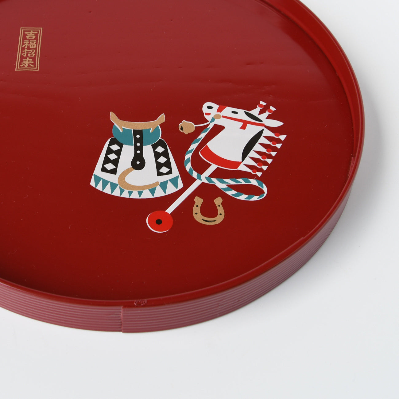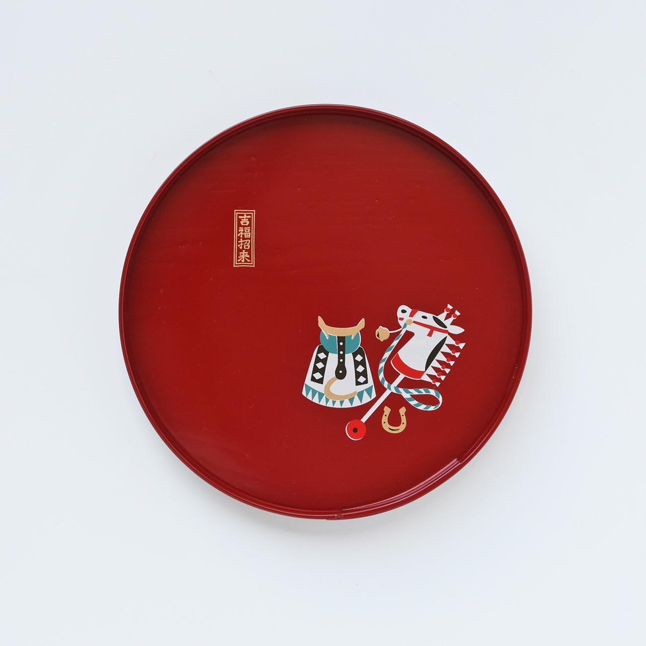 干支 丸盆7寸朱 午 吉福招来 春駒