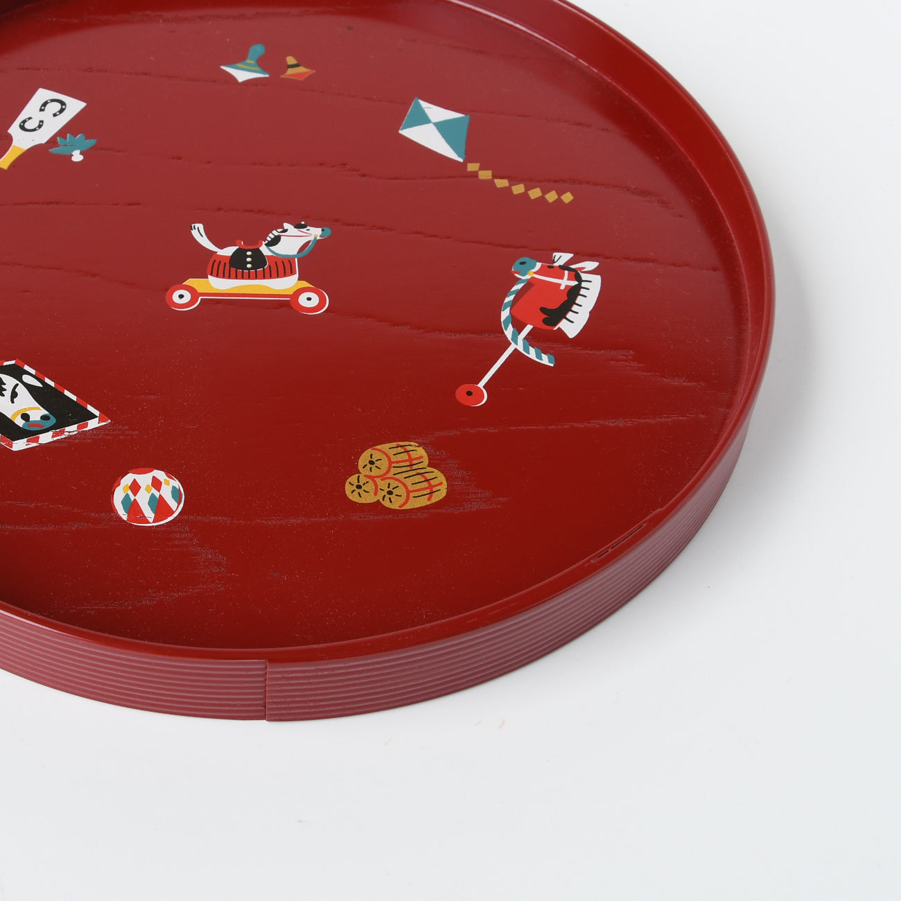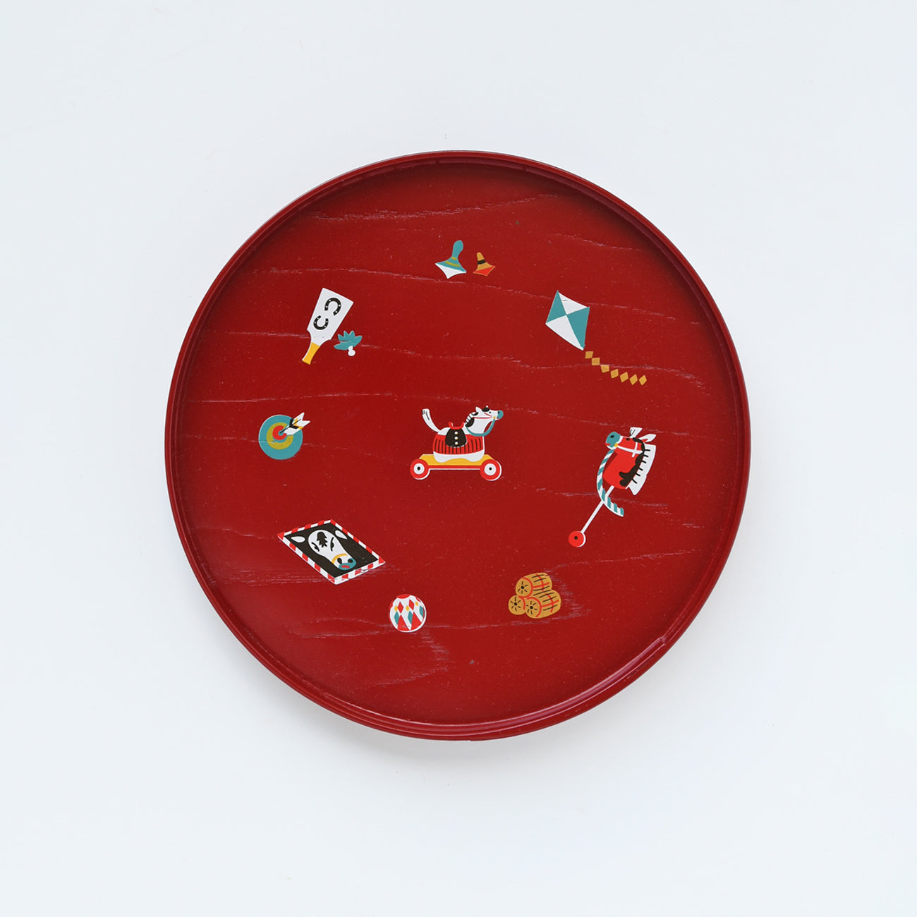 干支 丸盆7寸朱 午 おもちゃ尽くし / no.3353