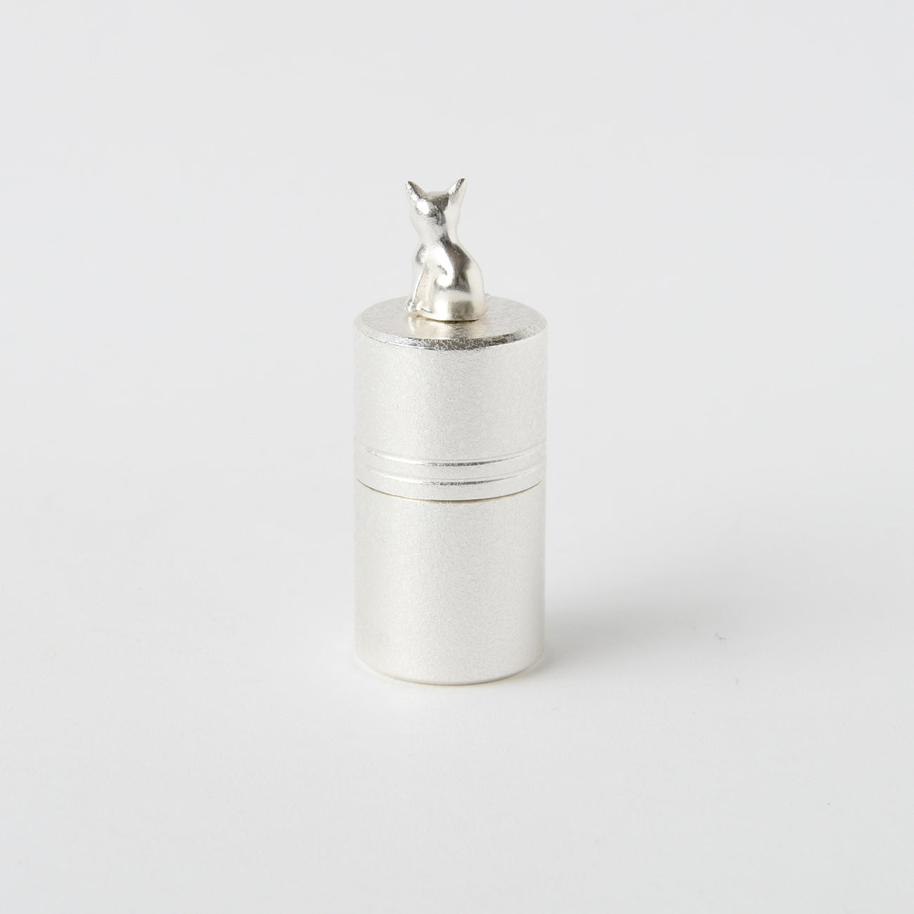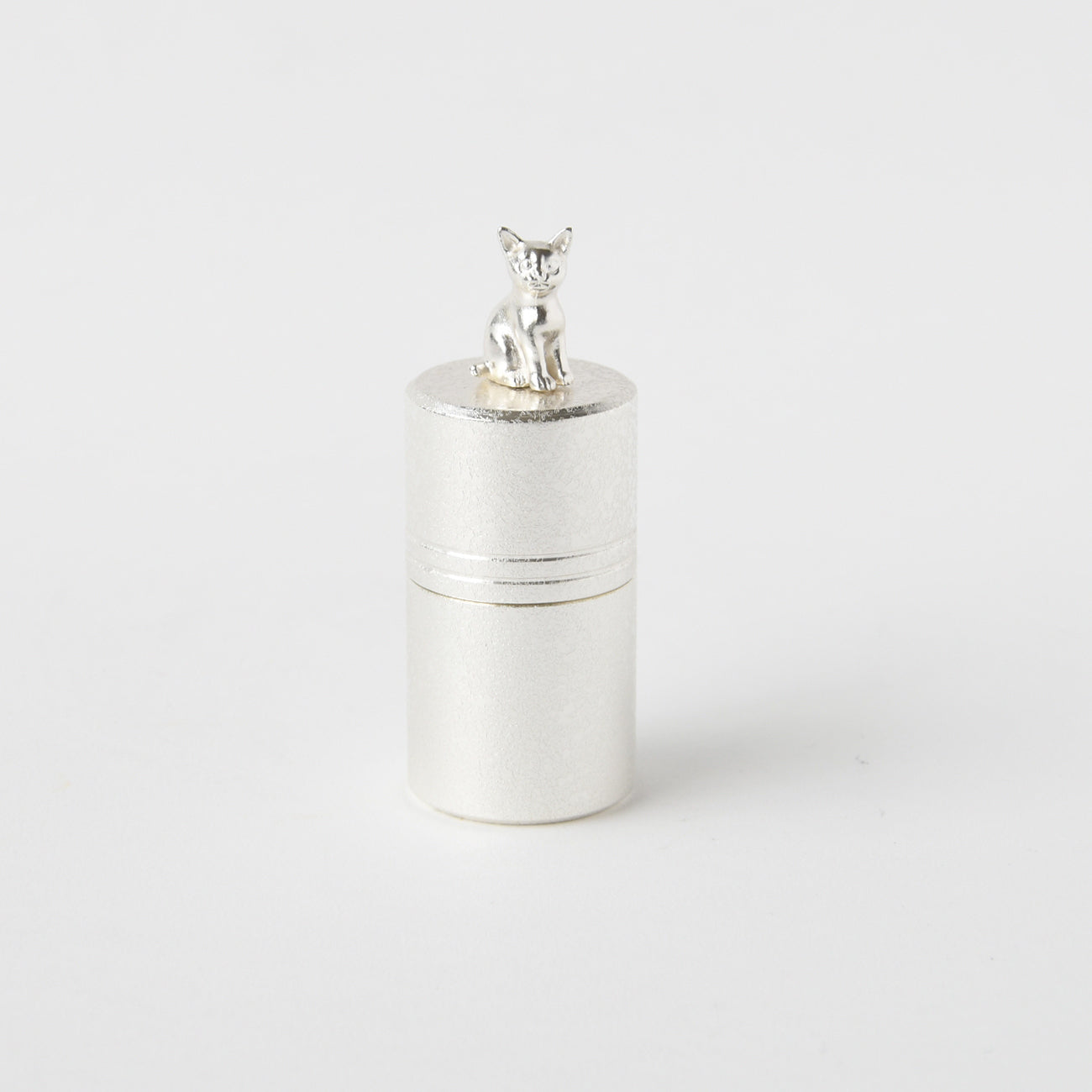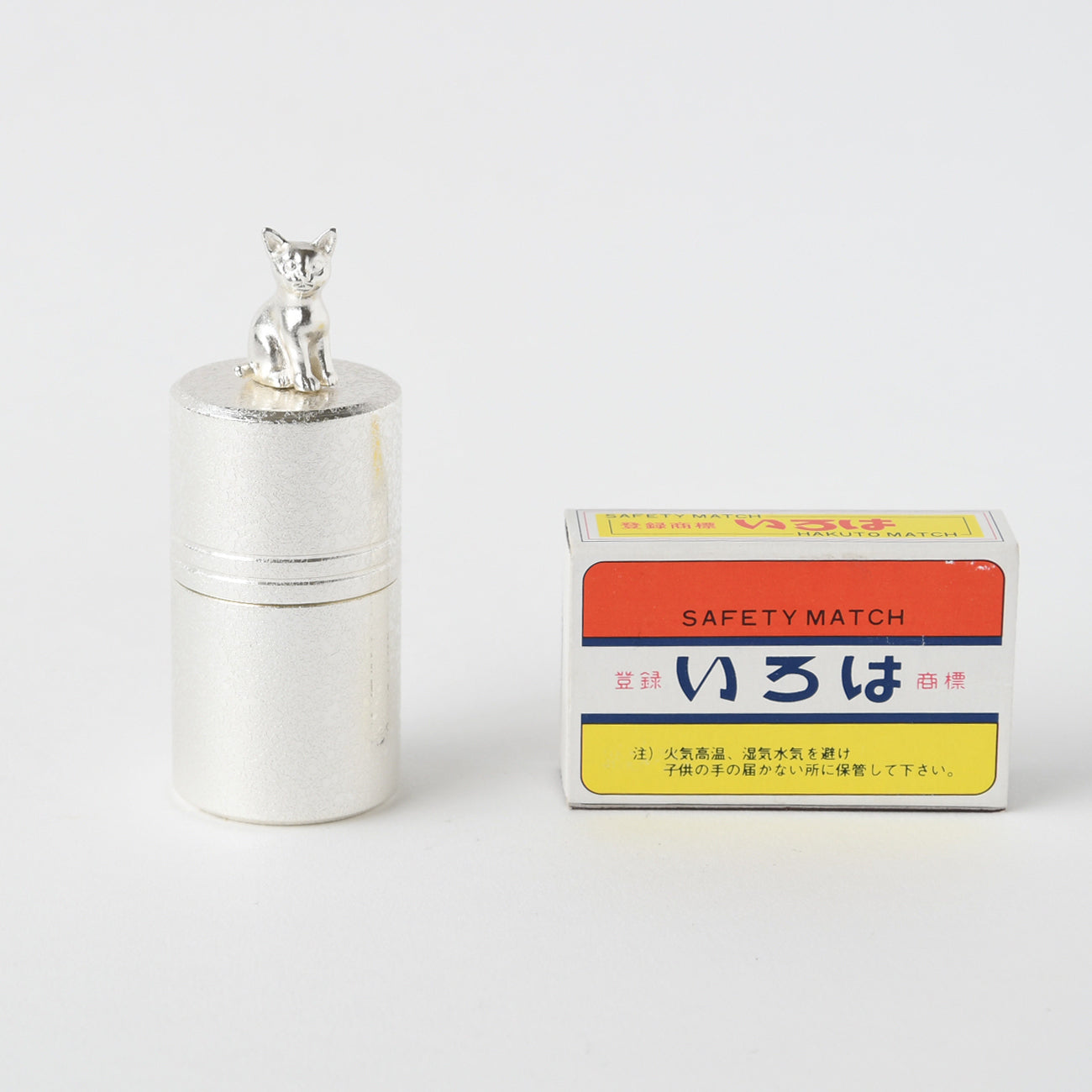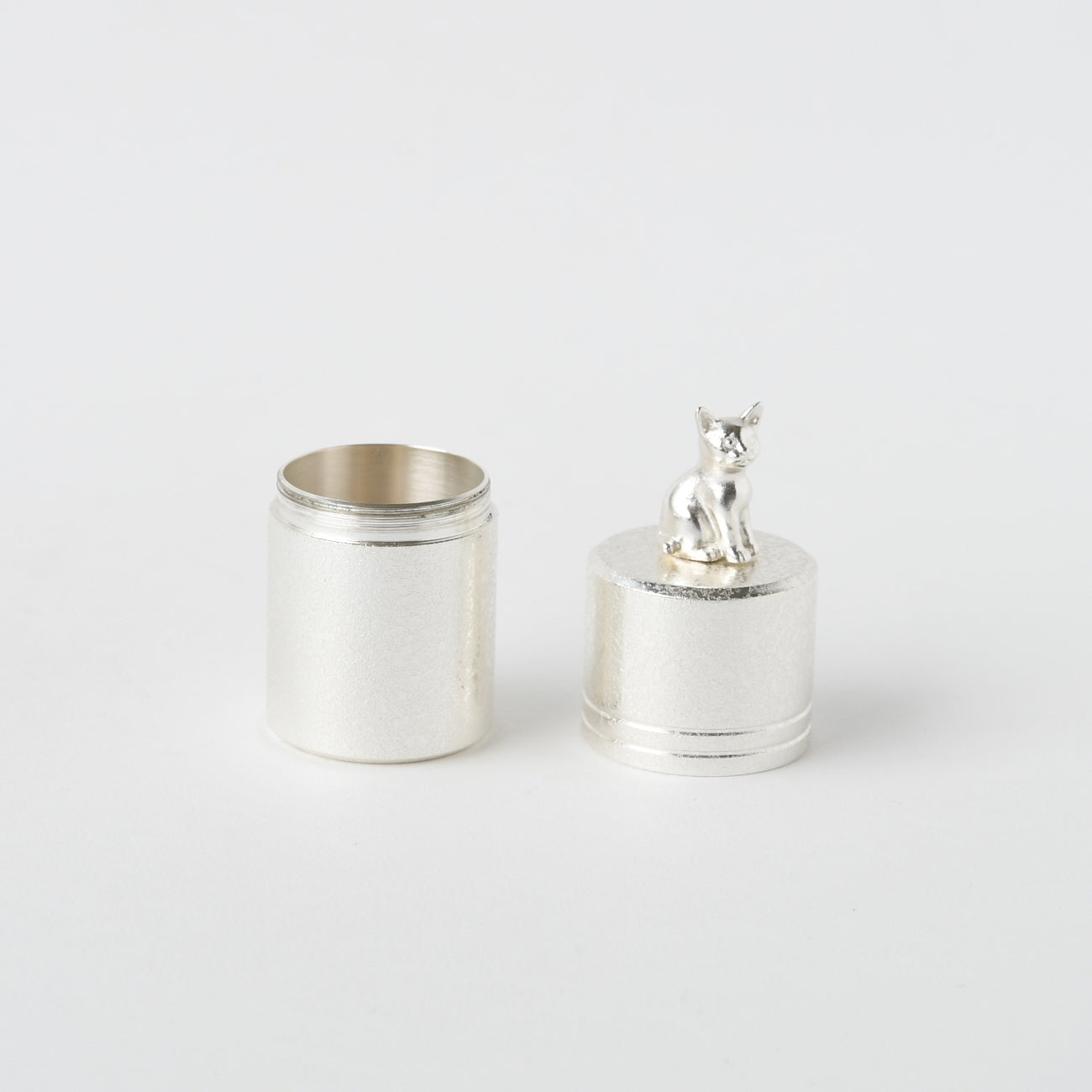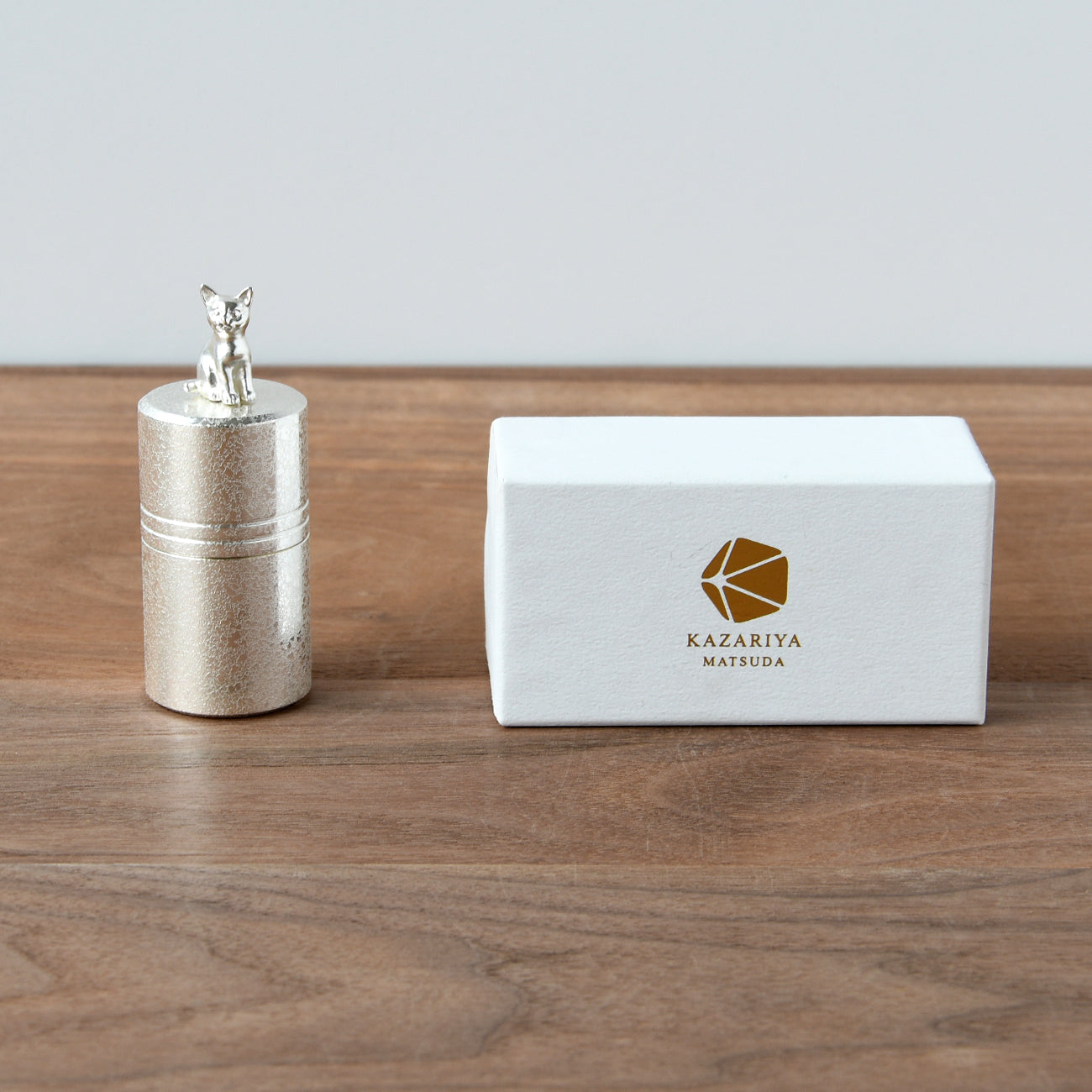 ケースの上には彫金を施した猫。おひとりおひとりの思入れのある物をいれるケース。