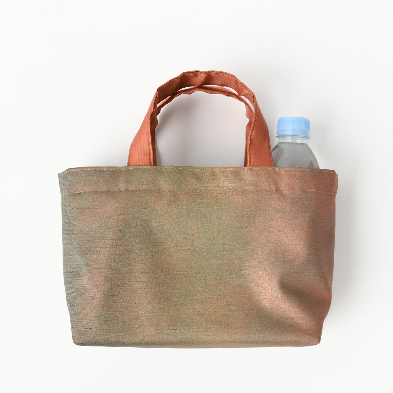 小さくても必要なものが収まるサイズ感。マチ幅もしっかりと(約8cm)あります。お弁当やマイボトルを入れたりサブバッグとしてもご活用ください。