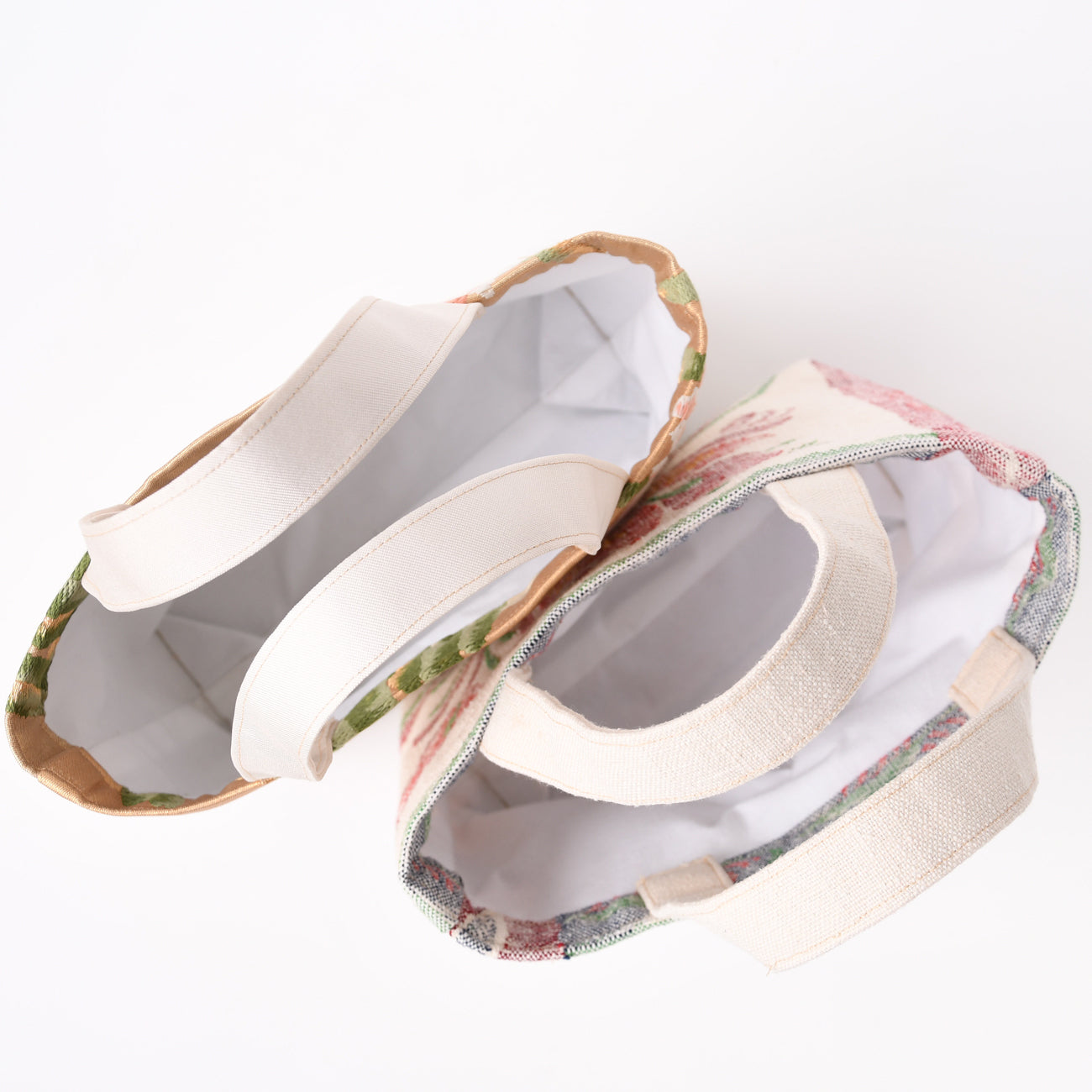 小さくても必要なものが収まるサイズ感。マチ幅もしっかりと(約8cm)あります。お弁当やマイボトルを入れたりサブバッグとしてもご活用ください。