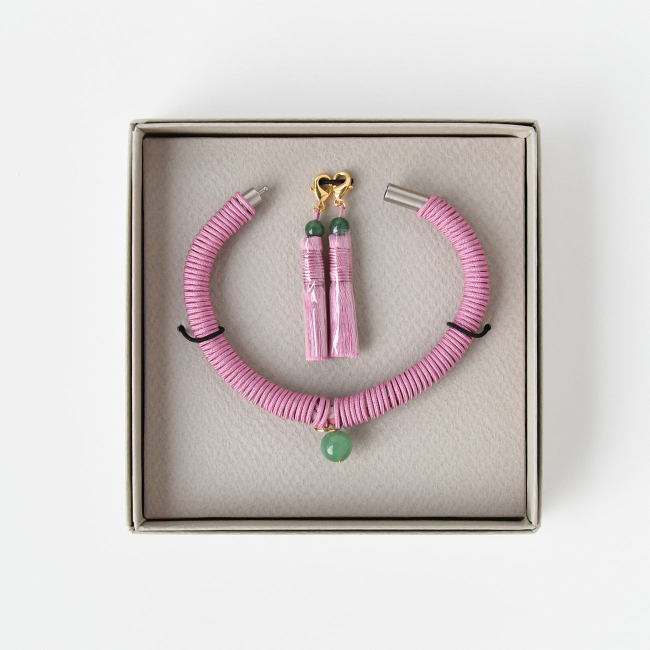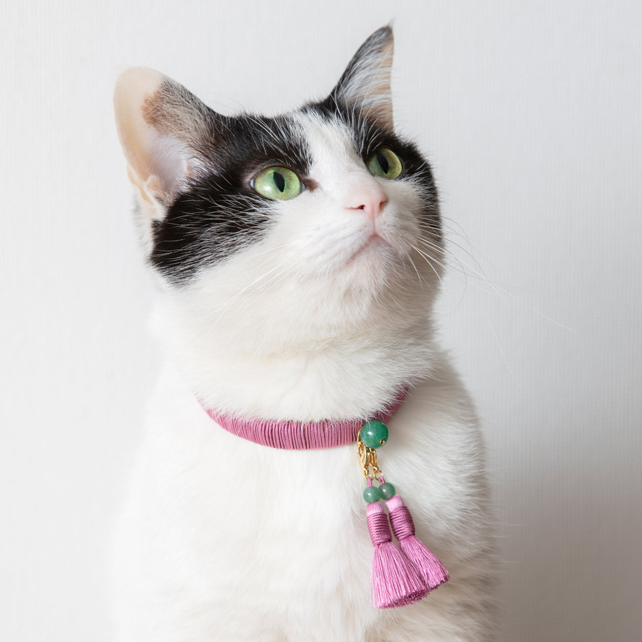 1764年創業の老舗数珠屋が一つ一つ心を込めて作る、天然石を使ったチャーム付き首輪は大事な家族がずっと元気でいてくれるように願うペットと飼い主の絆を象徴する"お守り"です。
