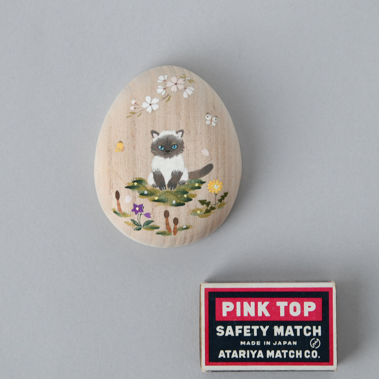 たまご箱の可愛らしいフォルムが特徴の桐箱です。開閉はスライド式。開け口がギザギザなのも人気のひとつ。開けると表の絵に因んだ絵柄が顔を覗かせます。