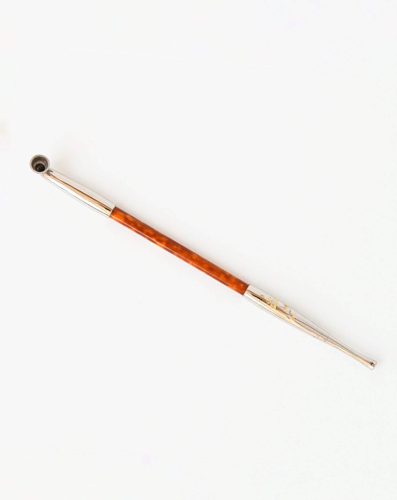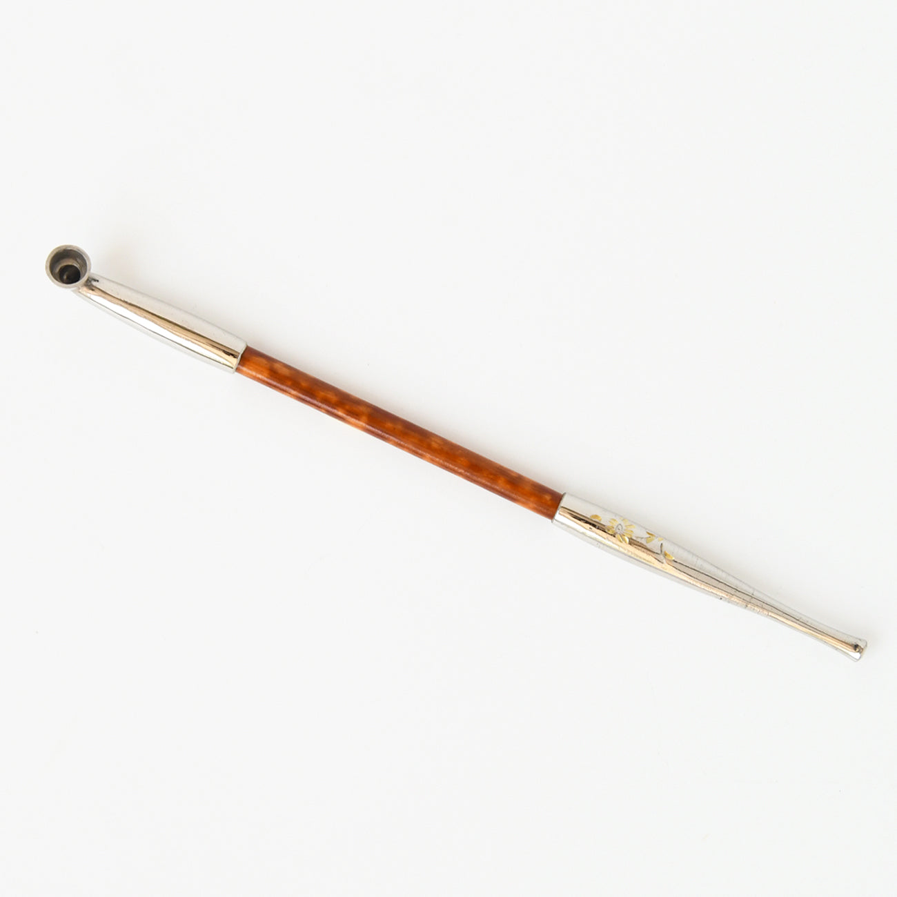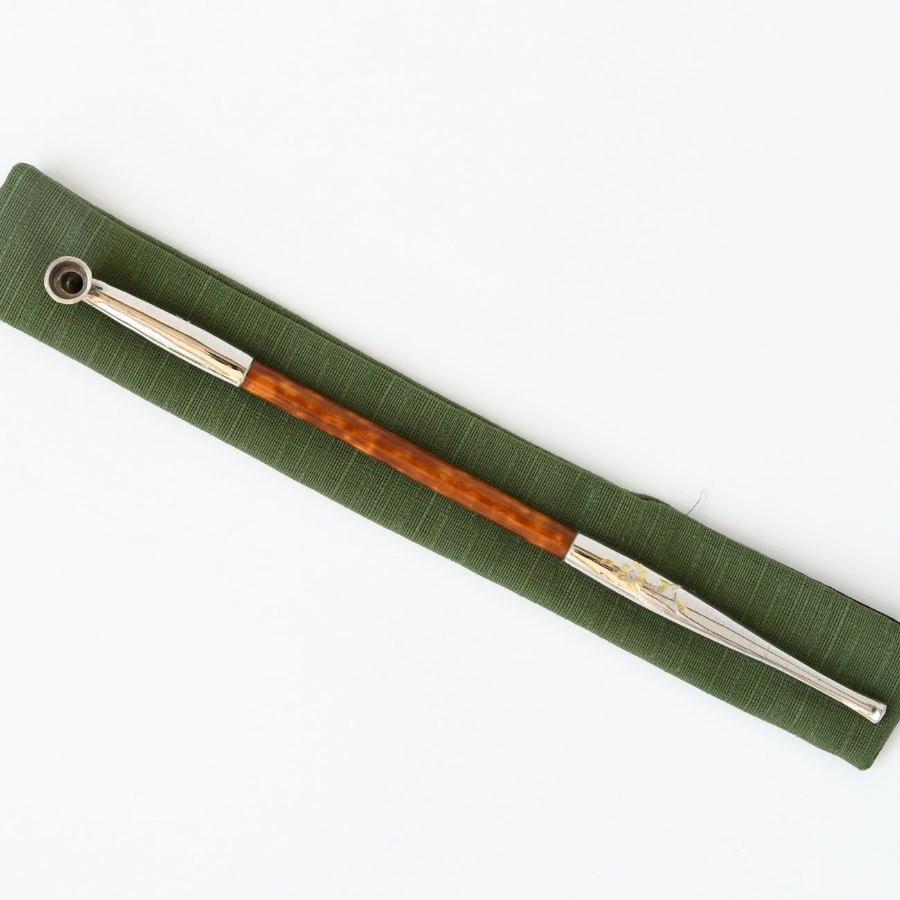 雁首と吸口の部分は真鍮の上からニッケルでメッキし、野草の彫を入れることで真鍮との色の変化を出しています。