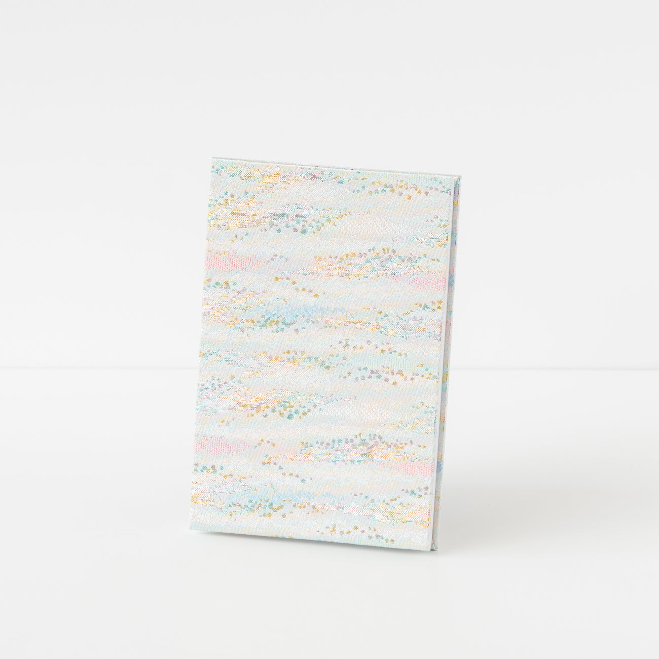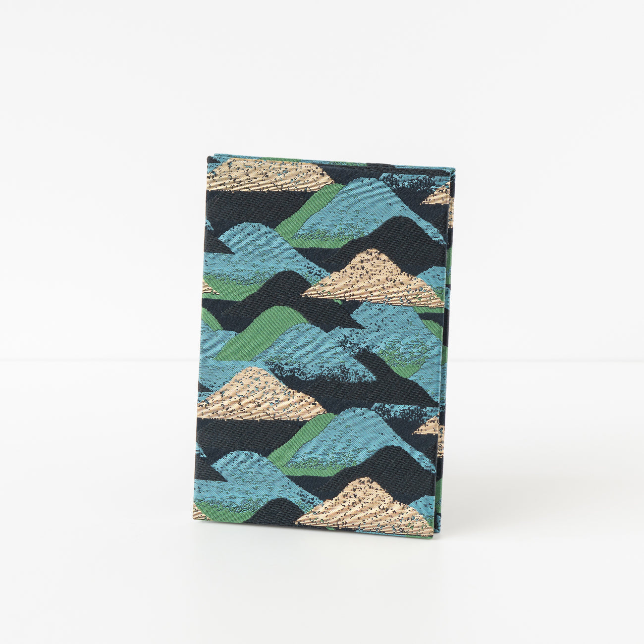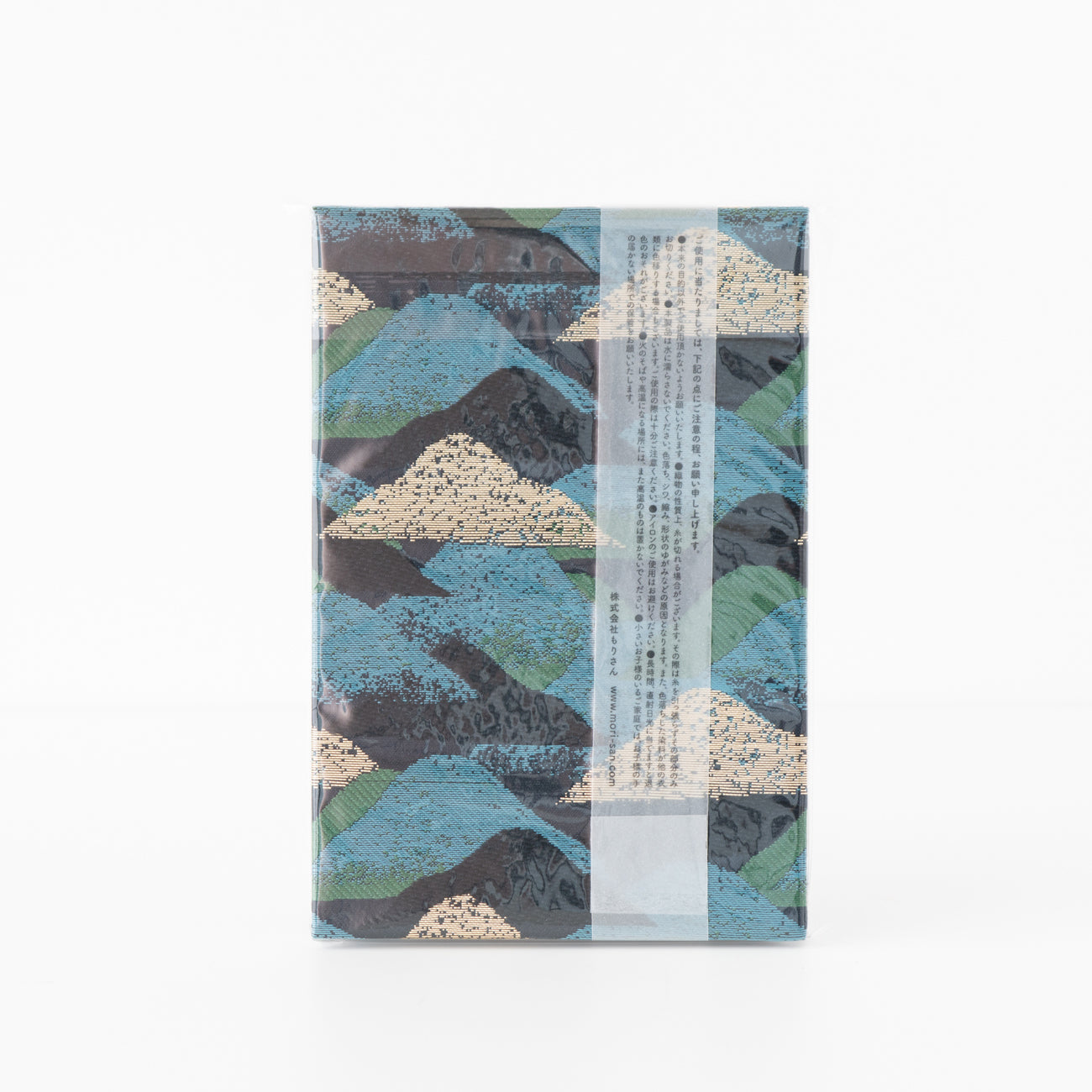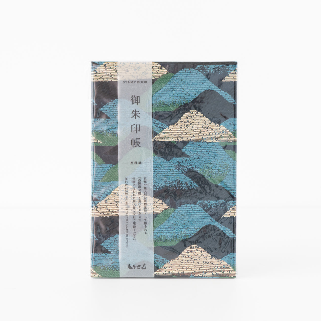 東山の情景である空・山・川と伝統的な京都らしい文様が、様々な色で織り上げられご朱印帳に仕上がっています。