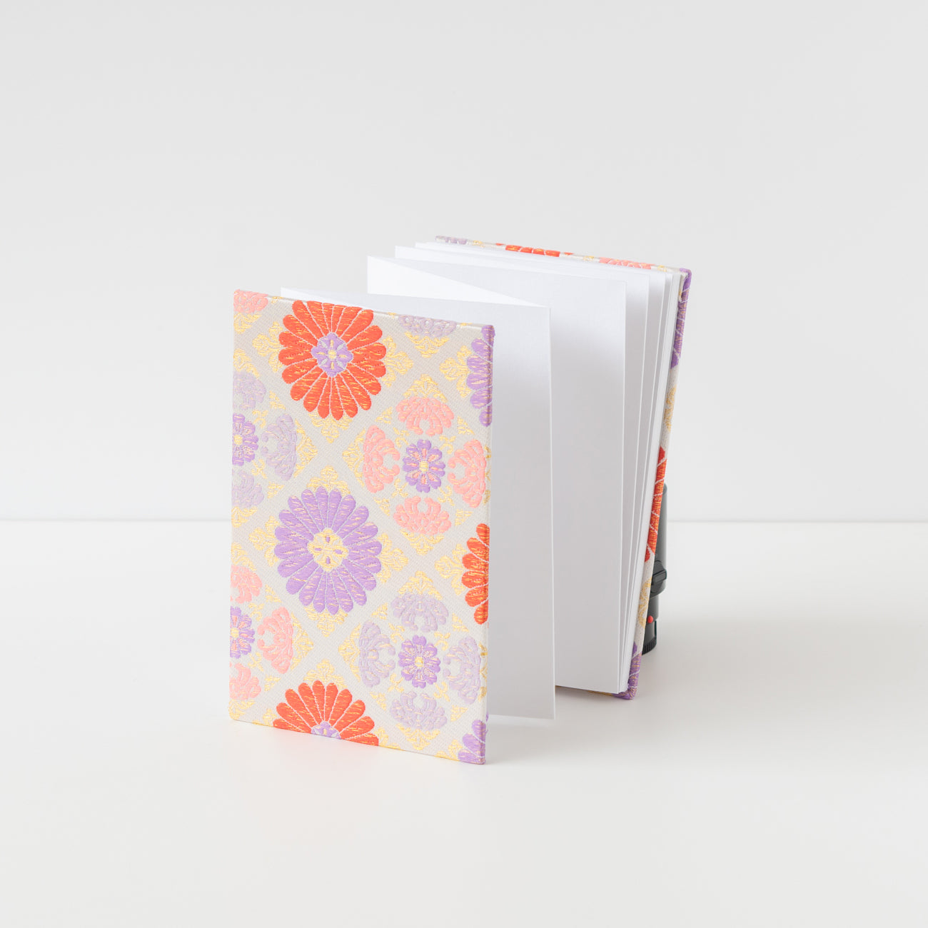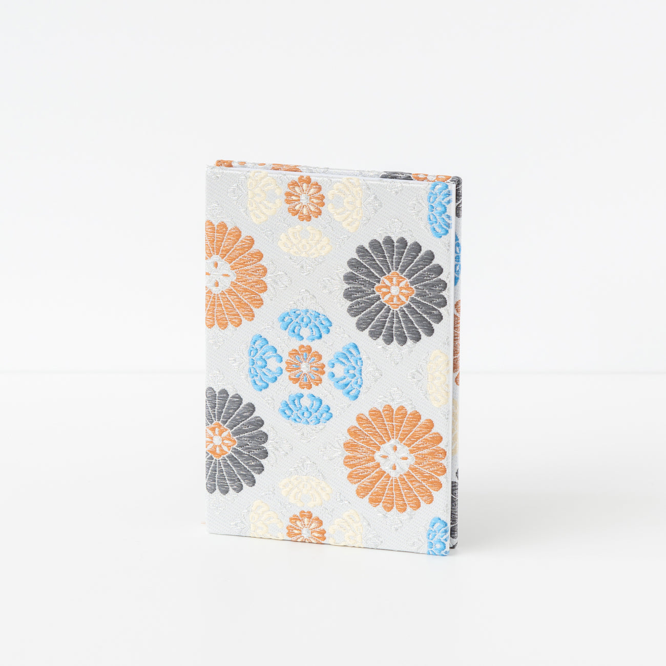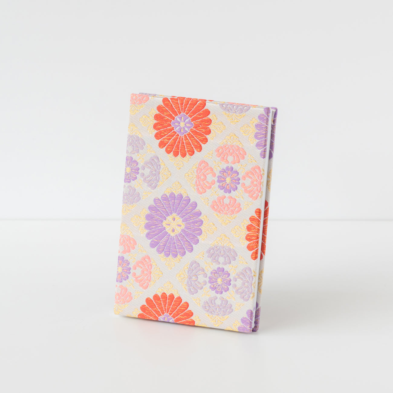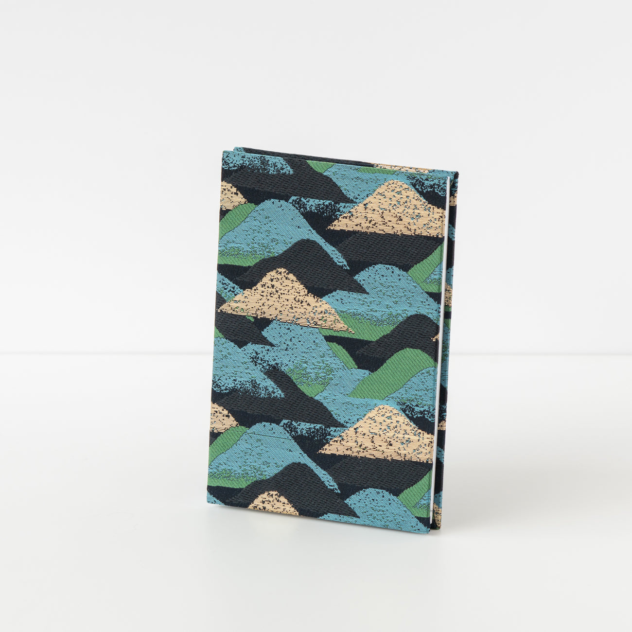 東山の情景である空・山・川と伝統的な京都らしい文様が、様々な色で織り上げられご朱印帳に仕上がっています。
