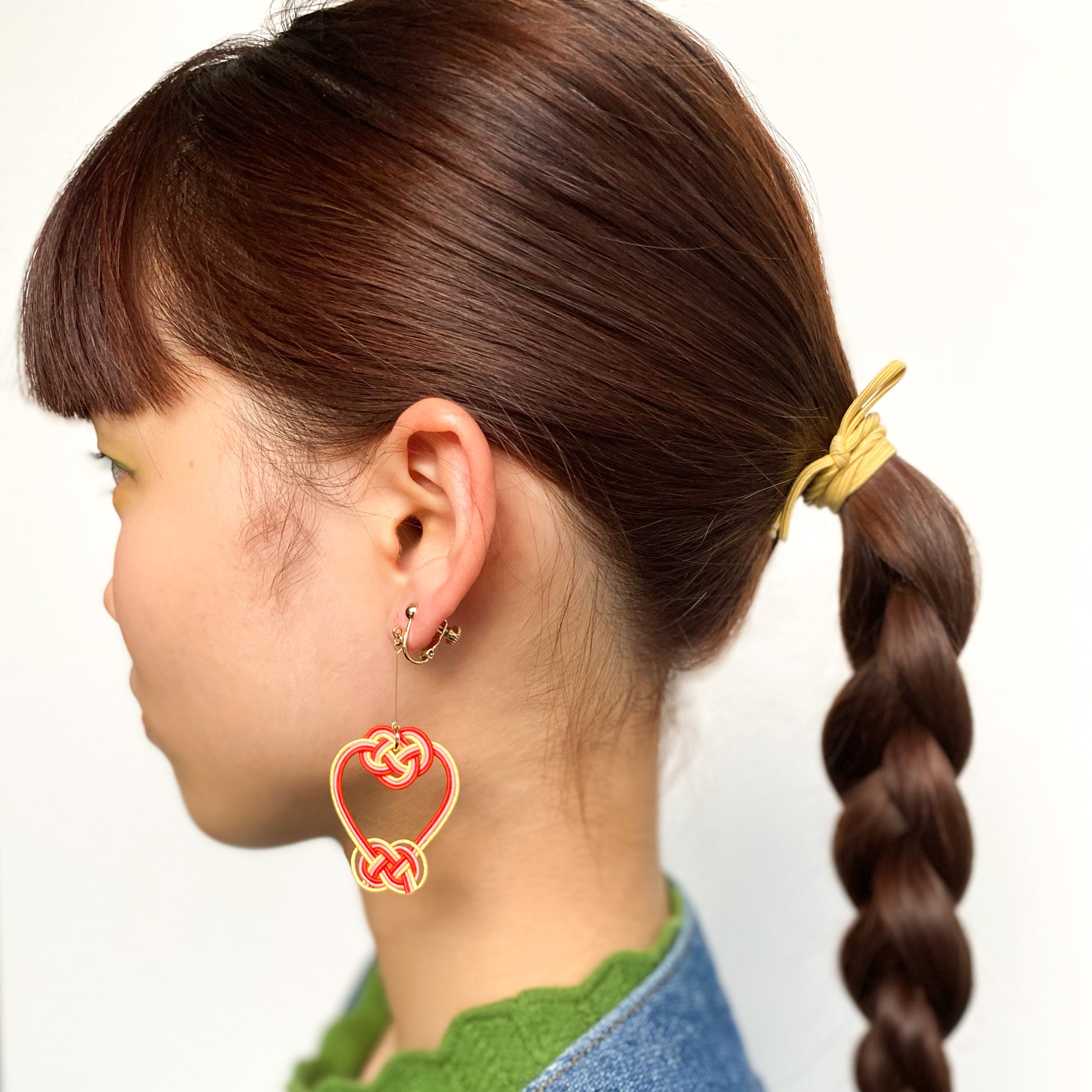 耐水加工はしておりますが、水引で製作しておりますので、水濡れにはご注意下さい。金属アレルギーの方や、メッキ加工した製品で肌に合わない方は使用をご遠慮下さい。多少の色合い、歪み等、個々で違ってくる可能性があります。
