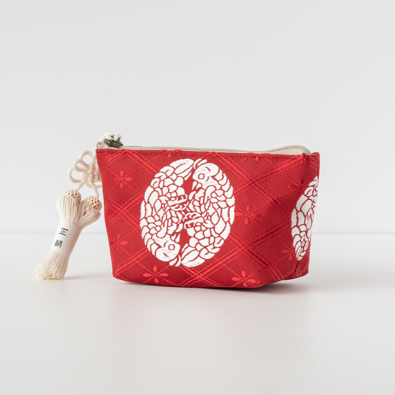有職織物の中でも最高級の浮織といわれる一際豪華な織物で出来た小物入れ。
