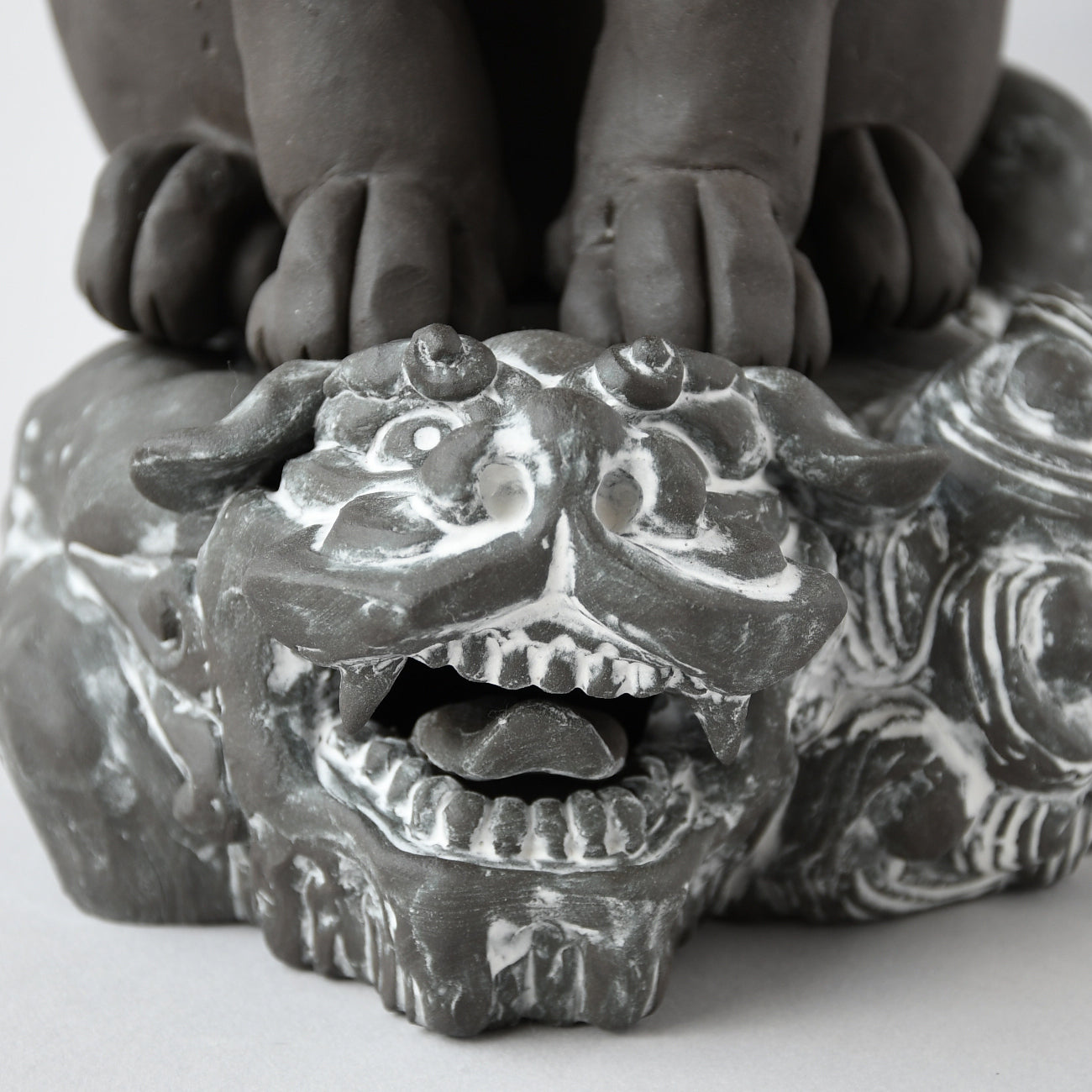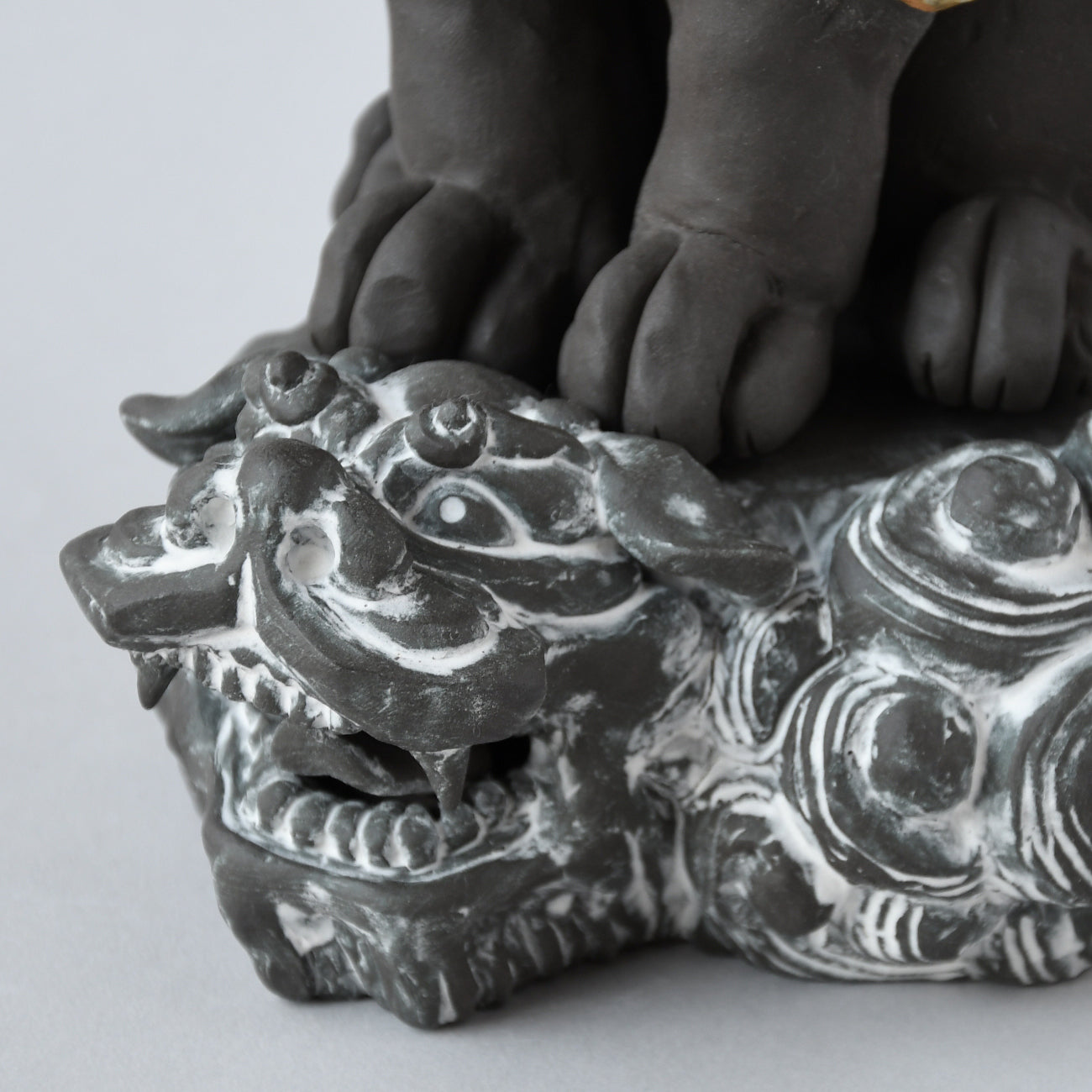 獅子は厄病を意味し、それを踏みつけることで、厄除けをする猫置物。