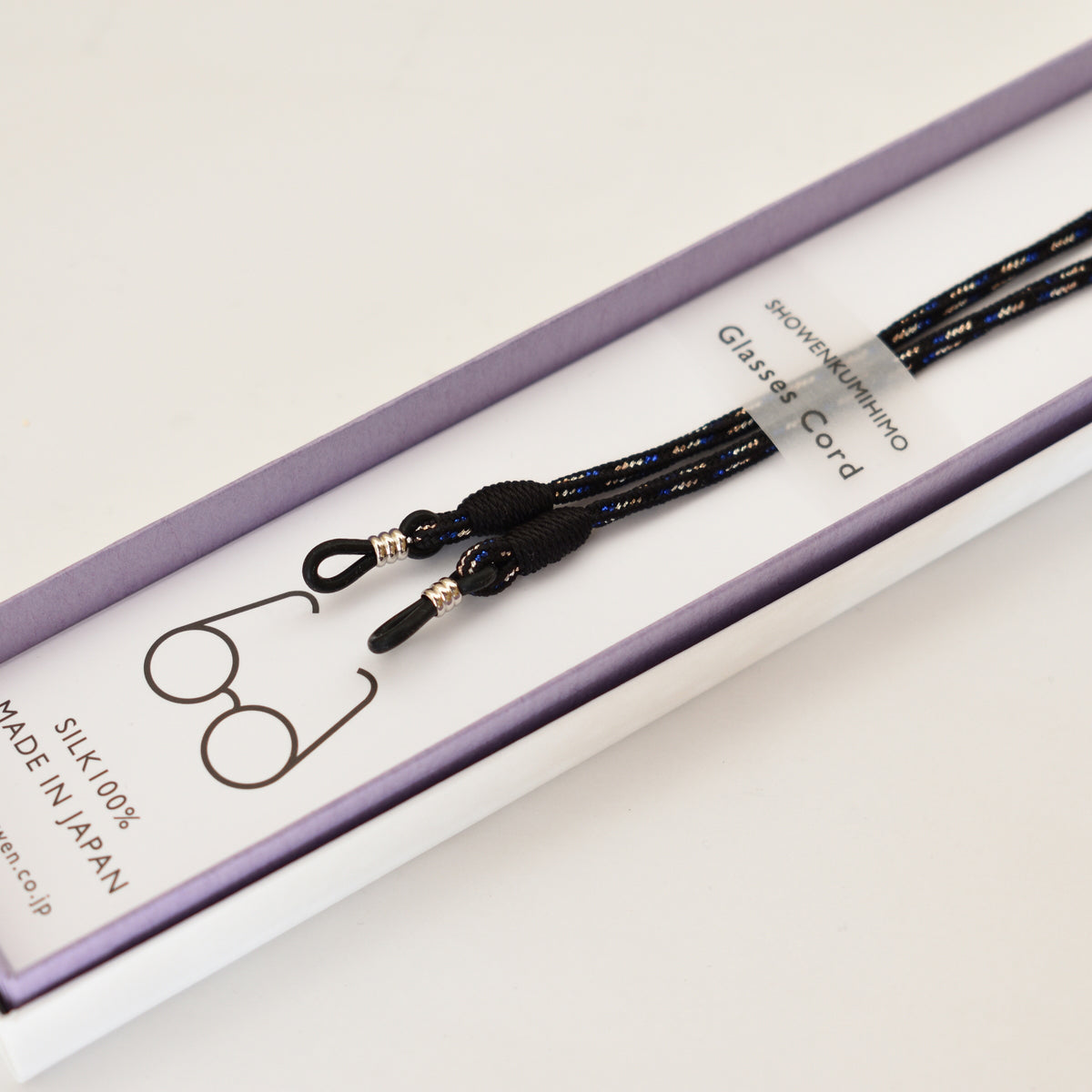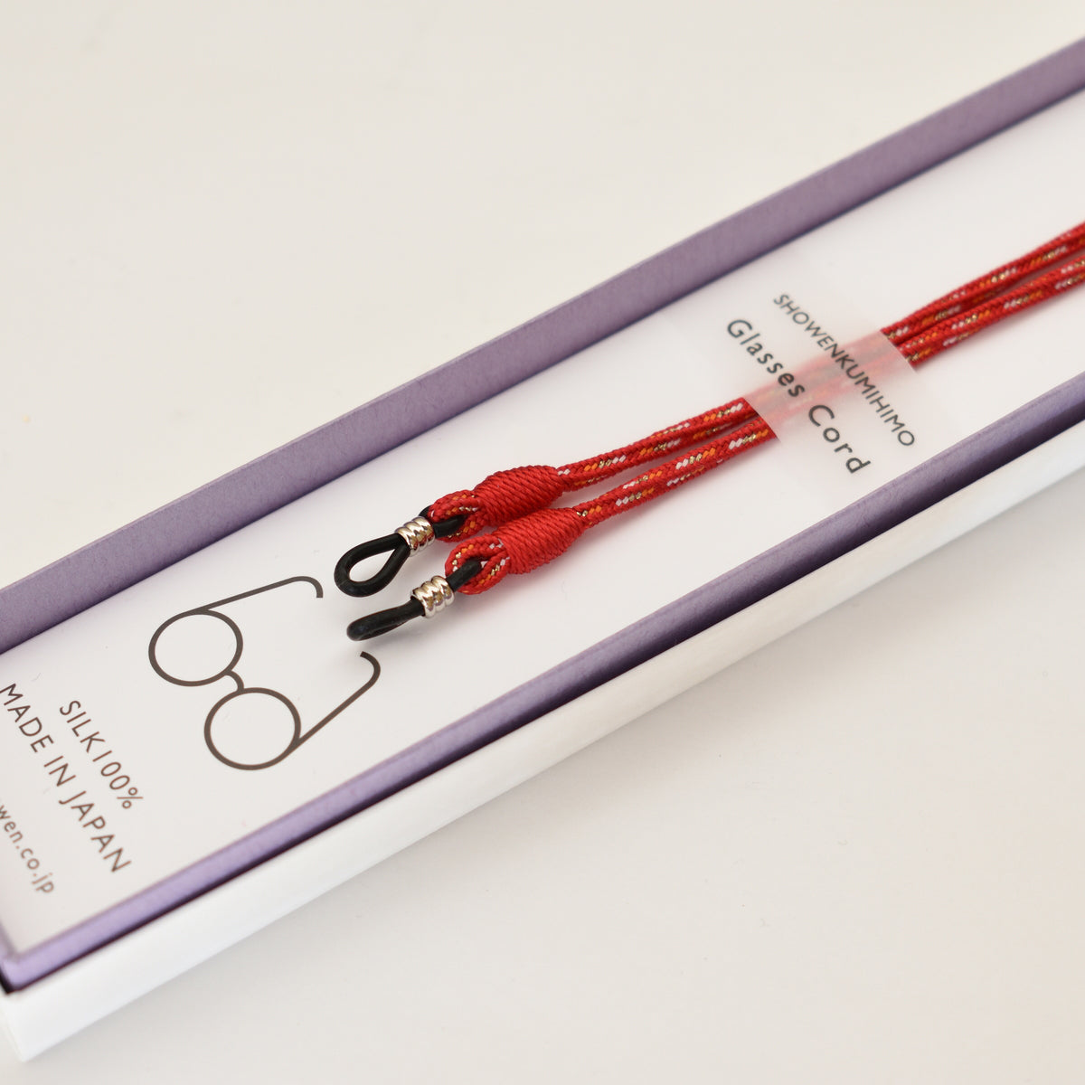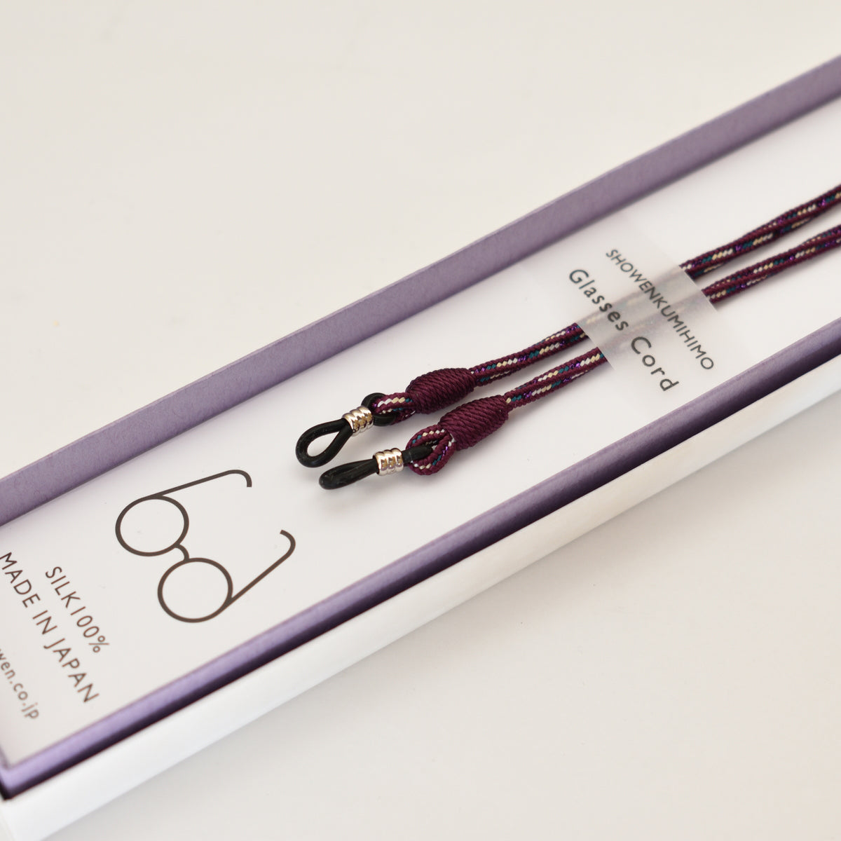 紐の螺旋形と細かな色使いが美しいグラスコードです。