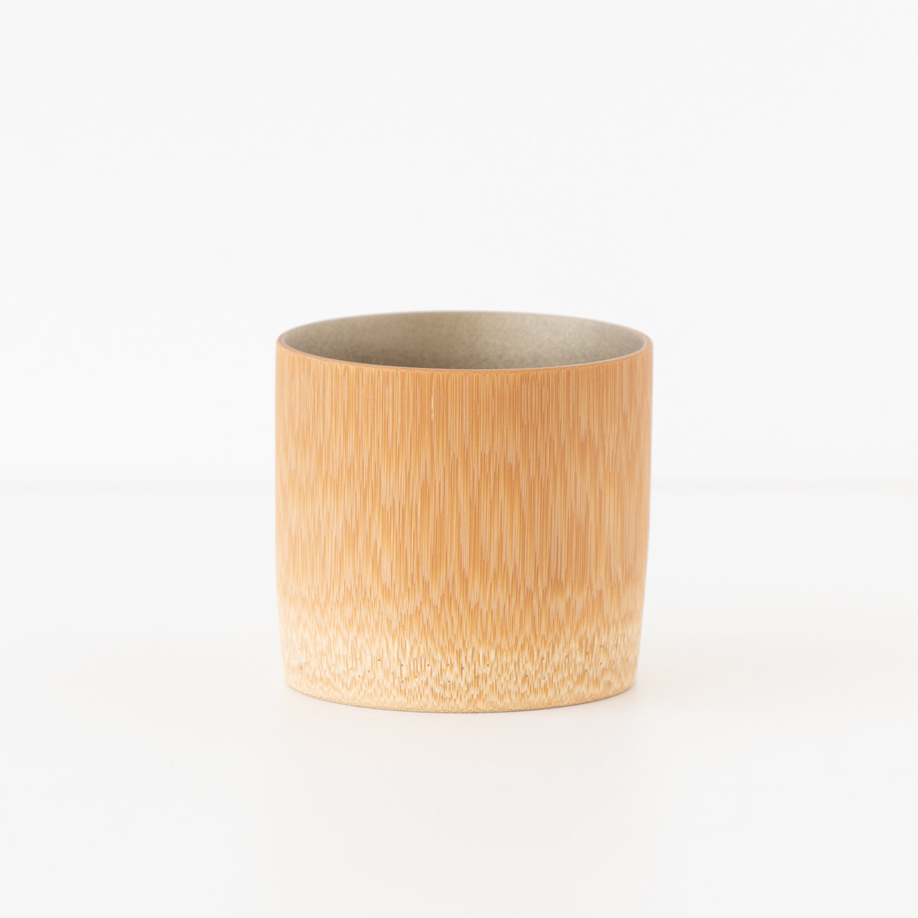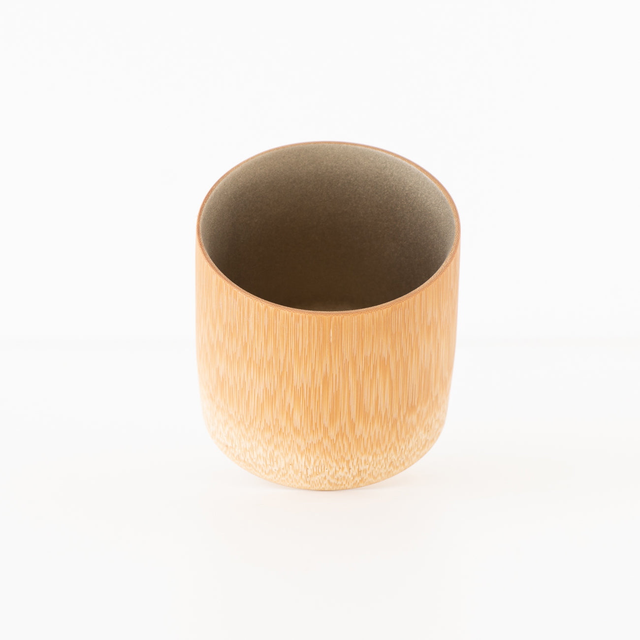 良質の真竹の皮を削り、木目を生かして丹念に仕上げた摺り漆の艶やかさと錫蒔地の繊細な煌めきが華やかな格調高い竹のカップです。