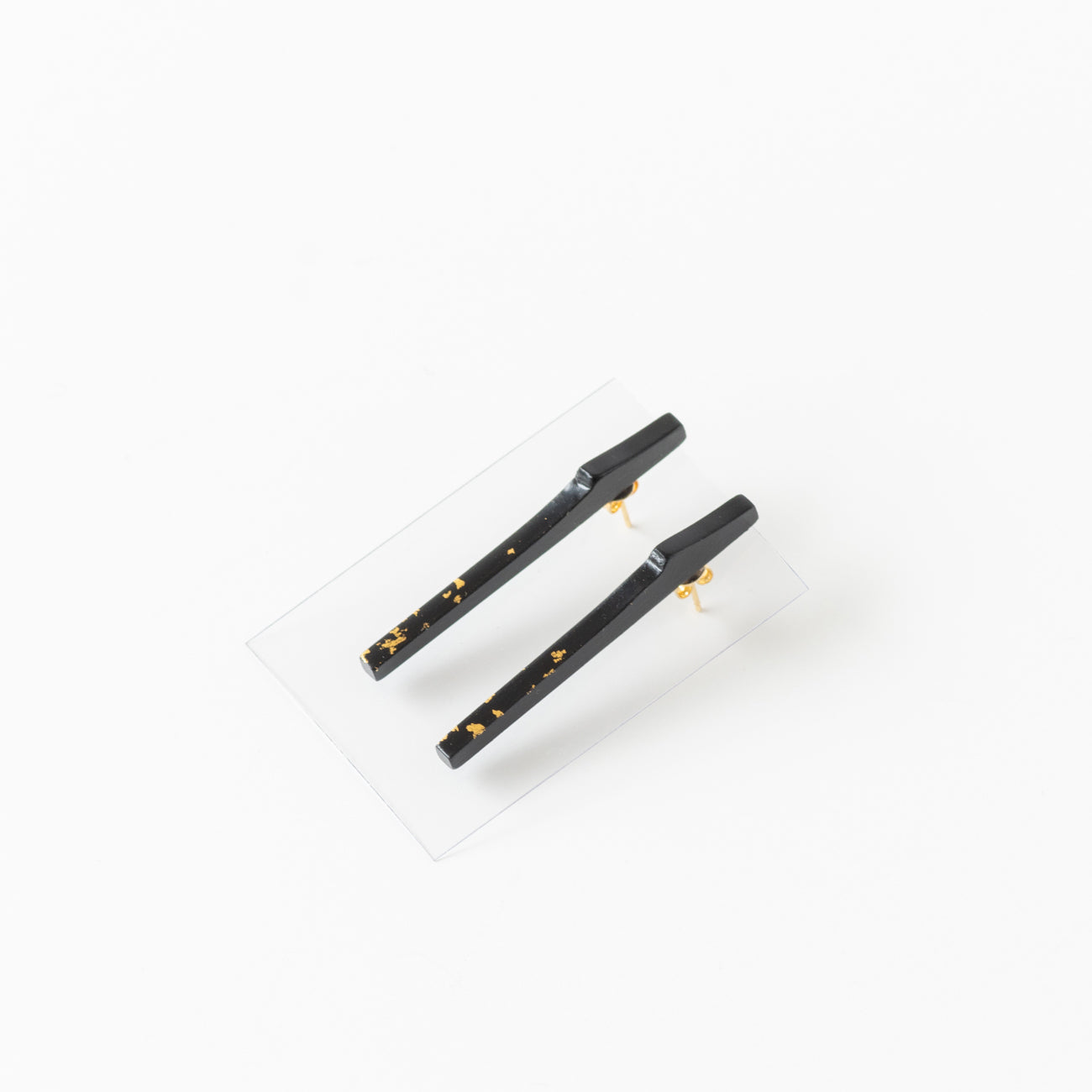 黒の漆に金箔が映えるピアス
