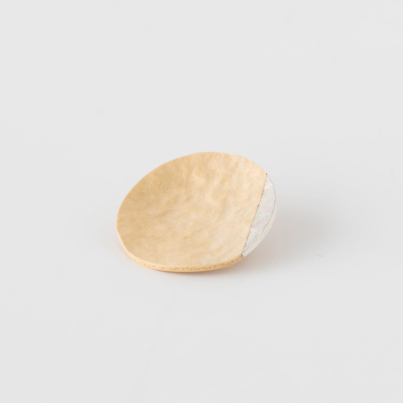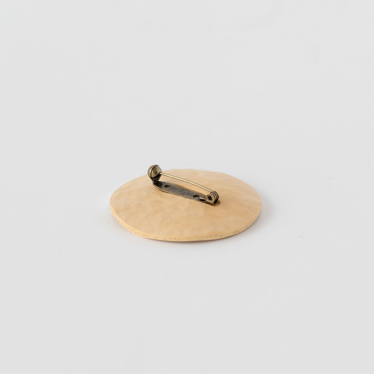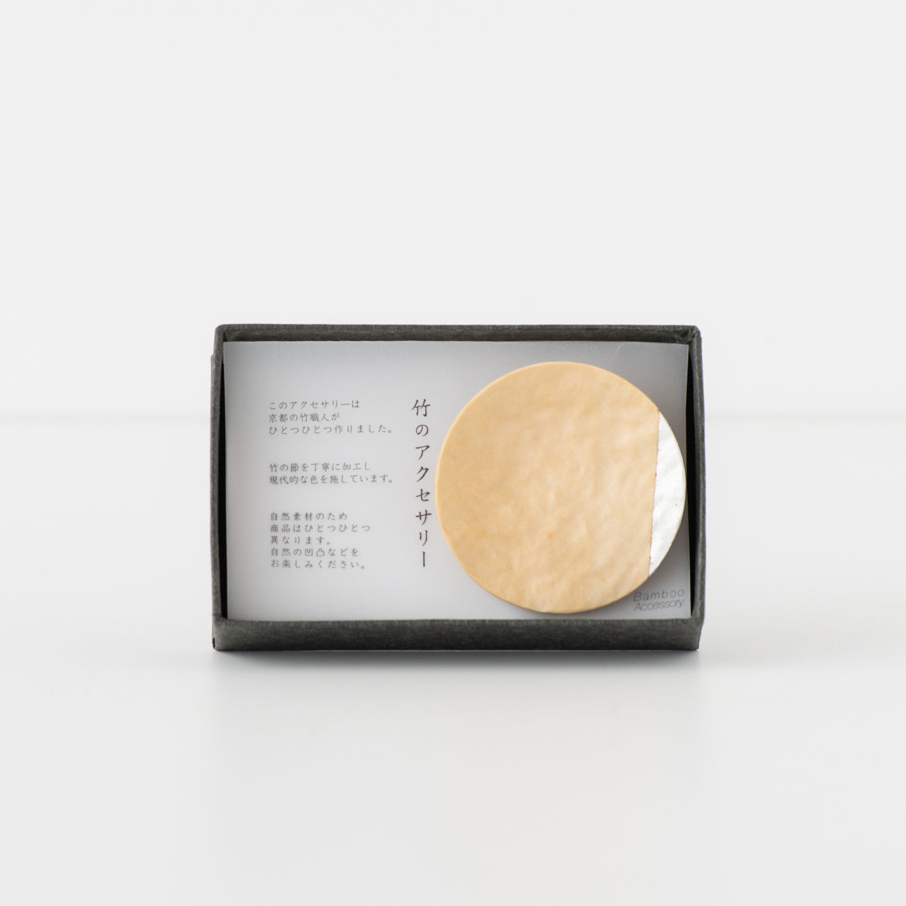 竹の節を丸く抜き、一部分にだけ箔をあしらったブローチです。