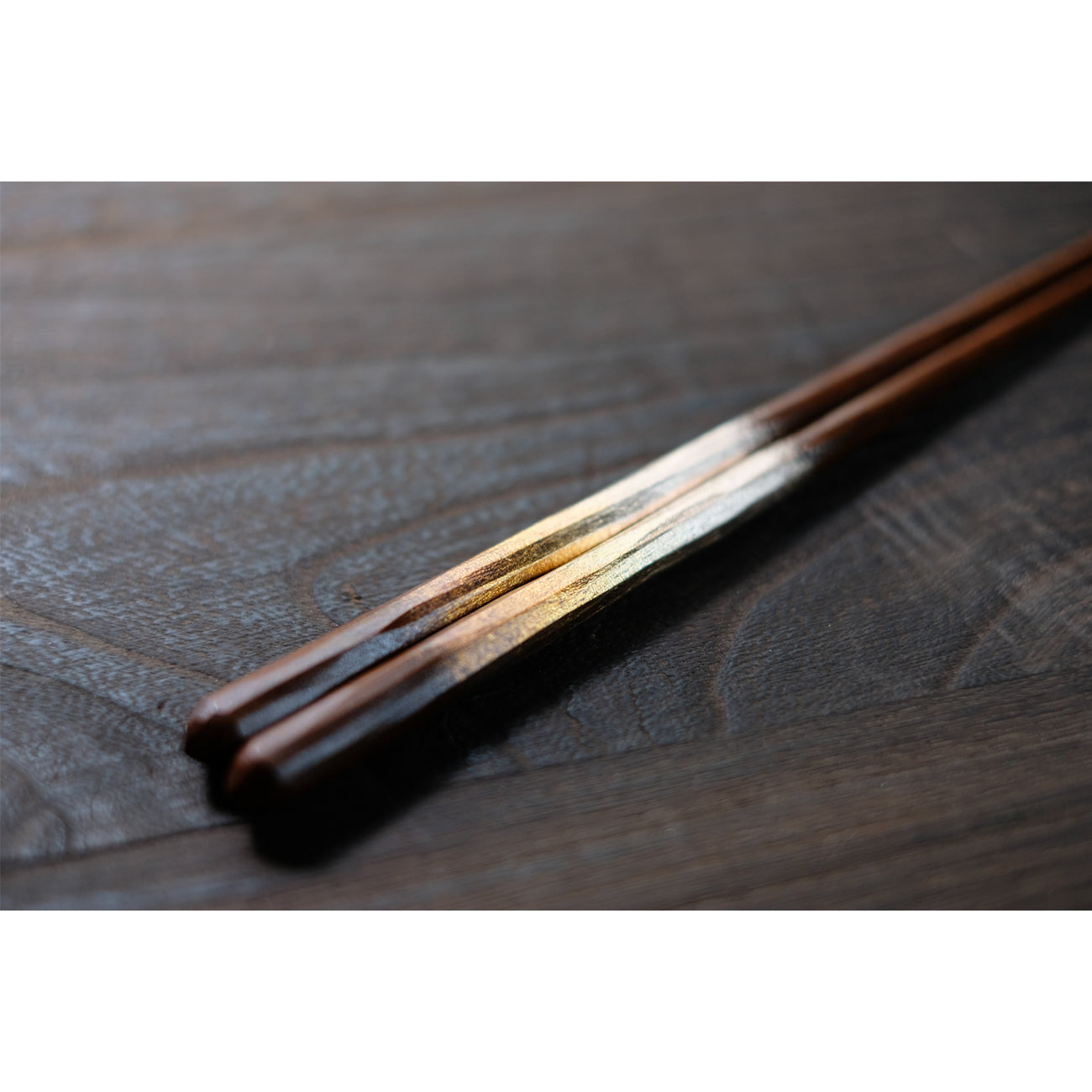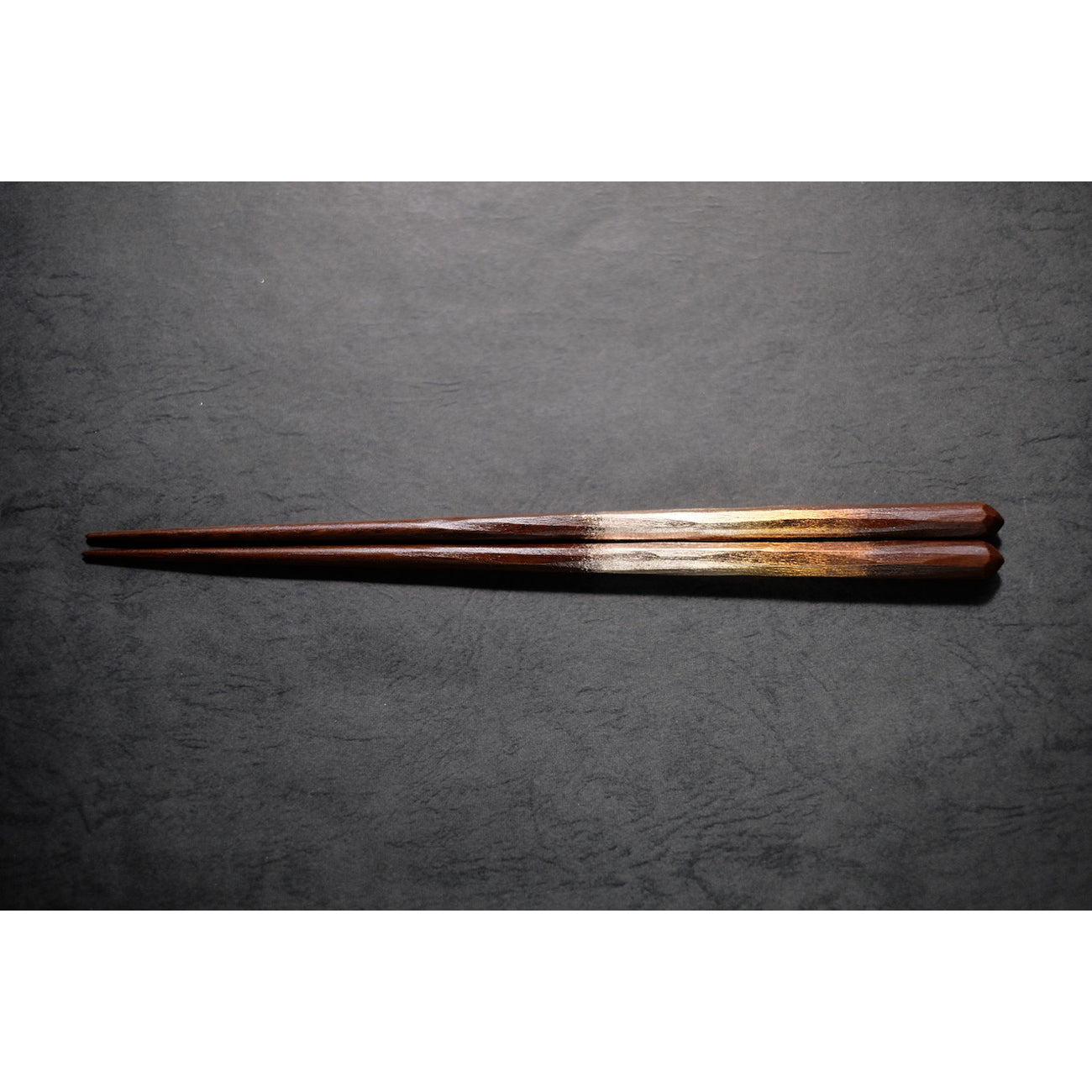 京都の伝統的工芸品「西陣織」の箔職人が作るお箸。西陣織の帯地の特徴である「引箔」の制作技法を用いて彩色、模様付けするのが特徴です。