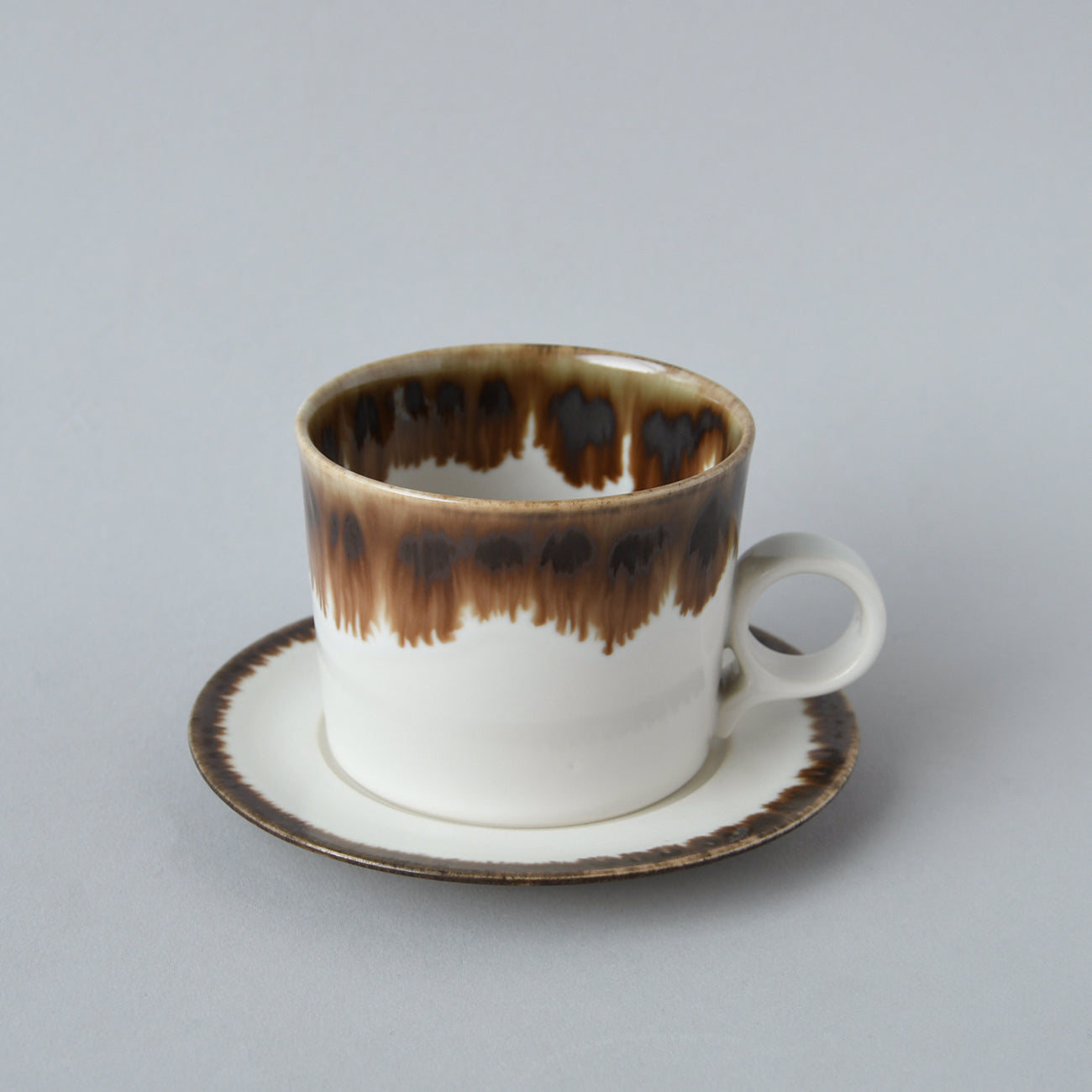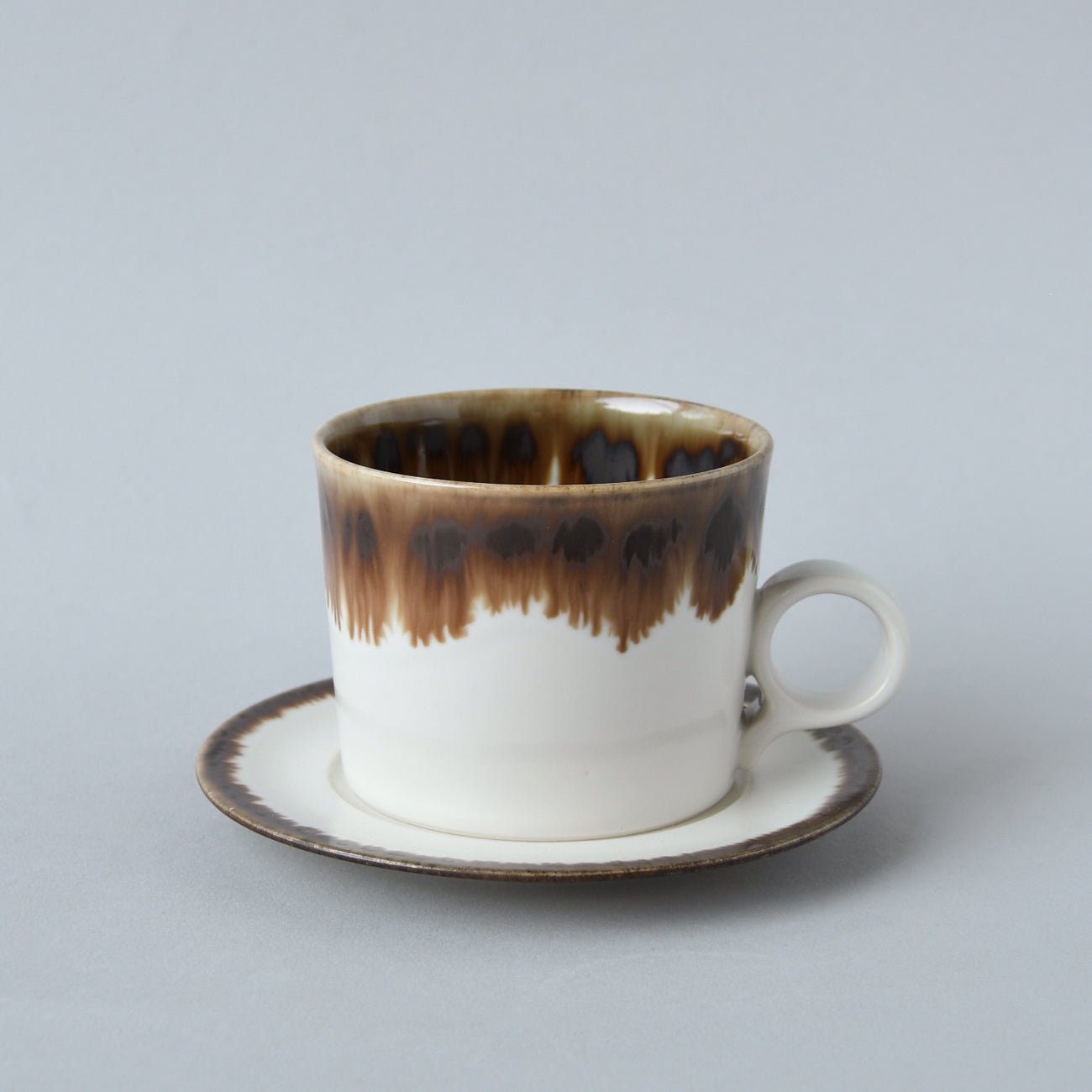 釉薬の流れ落ちる様子が印象的なコーヒーカップ